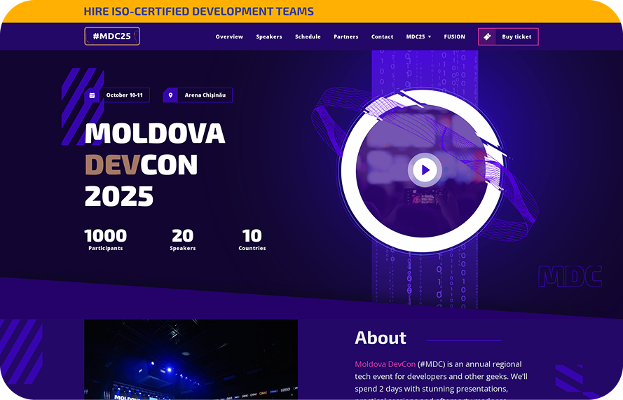 Moldova DevCon (#MDC) is an annual regional tech event for developers and other geeks. We’ll spend 2 days with stunning presentations, practical sessions and afterparty madness.